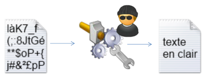 Reconstituer la donnée d'origine en tentant de "casser" la donnée chiffrée ou l'algorithme cryptographique.