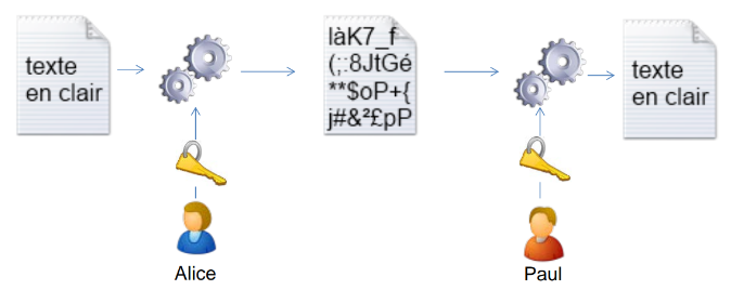 La clé utilisée pour le chiffrement est la même que celle utilisée pour le déchiffrement.
